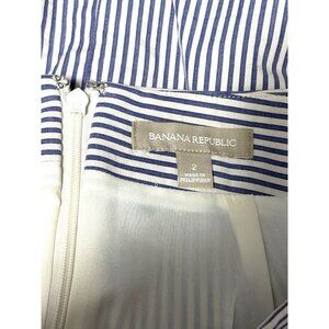 Banana Republic Womens Blue Striped Cotton Blazer & Skirt Suit Set Size 2