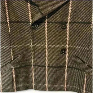 Keywords: Banana Republic, pea coat, women's fashion, recycled wool, faux fur collar, plaid coat, fall fashion, winter coat, elegant outerwear, double-breasted, chic style, brown coat, formal wear, casual wear, pre-owned.