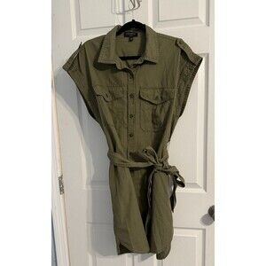 Banana Republic Women's Button-Down Dress Olive Green Size L Linen Blend Belted