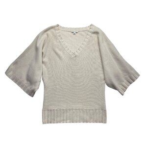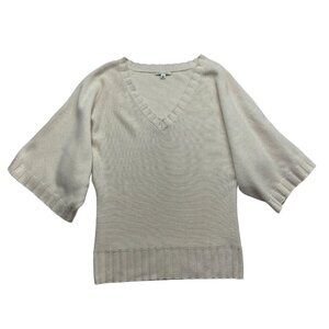 Banana Republic Womens Cashmere Wool V Neck Sweater Size M Kimono Sleeve Ivory