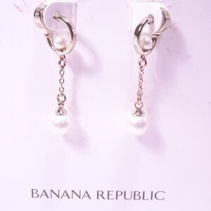 Add a touch of elegance to any outfit with these beautiful Banana Republic earrings! These dainty earrings feature a shiny gold hoop with a delicate pearl drop. Perfect for both casual and formal occasions.