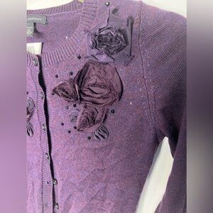 Banana Republic Women's Deep Purple Merino Rosette Cardigan