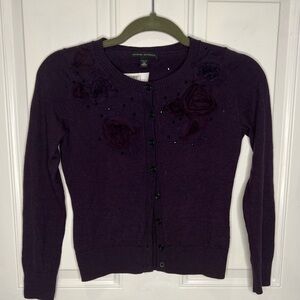 Banana Republic Women's Deep Purple Merino Rosette Cardigan