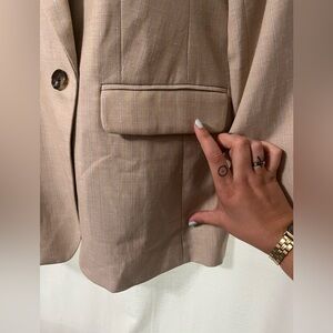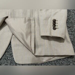 Elevate your wardrobe with this double-breasted tan blazer, featuring eye-catching silver stripe accents down the sides for a modern, luxe touch. Crafted with premium materials, this blazer offers a structured yet comfortable fit, perfect for commanding attention at the office or any special occasion. It delivers a chic and polished look that effortlessly blends style and sophistication.