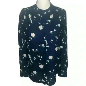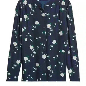 Banana Republic Women’s Drapery Classic Textured Floral Blouse, Size XS-Classic Fit, Color Navy (Floral Print)