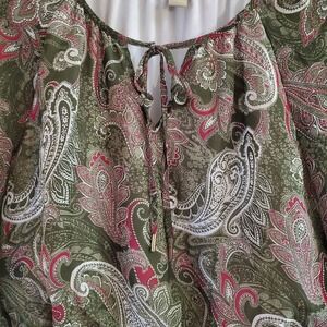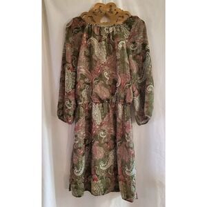 Banana Republic Women's Dress Size 12 Paisley Chiffon Peasant Boho Vacation Tie Neck 3/4 Sleeves