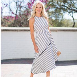 Banana Republic Women’s Dress size 8 Tweed Stripe Asymmetrical- Hem Cream Navy