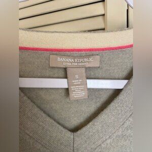 This Banana Republic merino wool sweater combines elegance and comfort, featuring a flattering V-neck design and soft, durable fabric for professional wear.