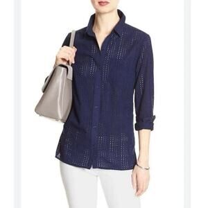 Banana Republic Womens Eyelet Classic Buttondown Shirt Maritime Blue Size Medium