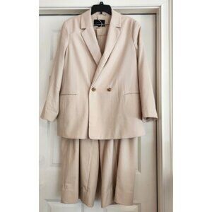 Banana Republic Women's Flannel Blazer Double Breasted Stretch Oyster Pearl Sz18