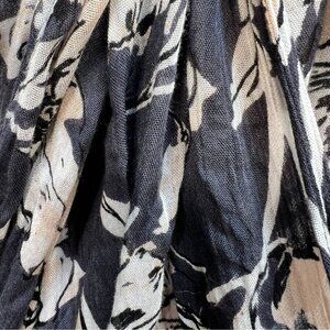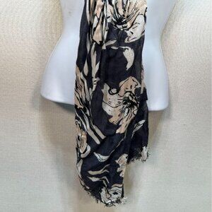 This Banana Republic scarf showcases a captivating floral pattern in black and beige hues. Its lightweight fabric is perfect for transitional seasons, offering both style and comfort. The scarf's versatile design complements various outfits, whether dressed up for formal occasions or dressed down for casual outings. A chic and functional accessory.