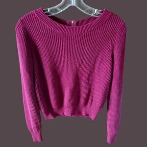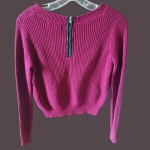 A versatile fuchsia sweater designed for comfort and style. Crafted with a soft cotton blend, it features a ribbed texture and back zipper detail.in in great condition from smoke and pet free home.