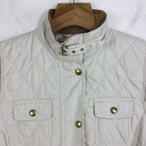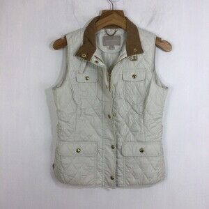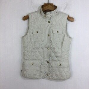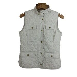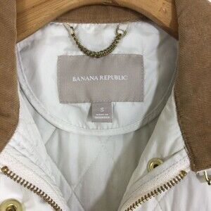Banana Republic Womens Full Zip Button Corduroy Collar Quilted Vest White Small