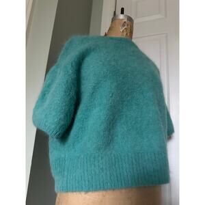 Banana Republic Women's Fuzzy Alpaca-Blend Puff-Sleeve Sweater XL Blue teal