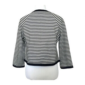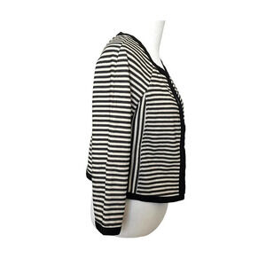 Banana Republic Women's Jacket Black Ivory Striped Stretch Open Front Blazer 12