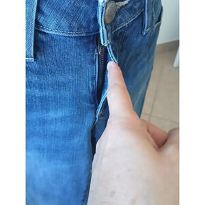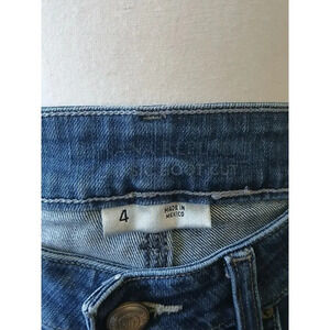 The jeans feature a button closure and zipper accents, adding a touch of excitement to the overall design. They are available in size 4 and were made in Mexico. These jeans are a must-have for any fashion-forward woman looking to add a chic pair of denim to her collection.