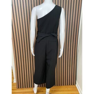 Banana Republic Women's Jumpsuit One-Piece Stretch One-Shoulder Belted 0 Black.