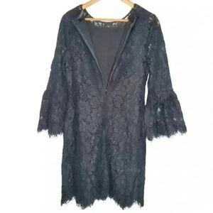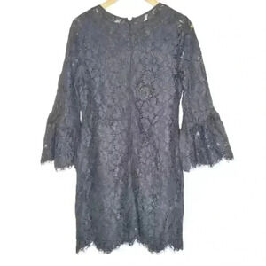 BANANA REPUBLIC WOMEN'S KNEE LENGTH DRESS SIZE 8 BLACK LACE BACK ZIP BELL-SLEEVE
