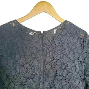 BANANA REPUBLIC WOMEN'S KNEE LENGTH DRESS SIZE 8 BLACK LACE BACK ZIP BELL-SLEEVE