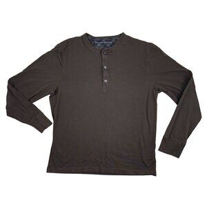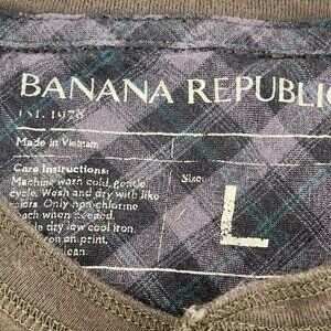Banana Republic Women's LARGE 100% Cotton Green Henley with Pearlescent Buttons