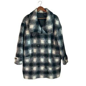Stylish and warm women's Long Coat or Pea Coat made with premium Italian wool blend fabric. Features a classic checkered pattern for a timeless look. Ideal for colder seasons. Very good condition, Material Wool Polyester and Acrylic, dropped shoulder, Relaxed Oversized fit , Fully lined, Very good condition, Black or Off white and black