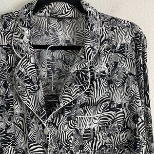 Banana Republic Womens Large Zebra Print Black White Pajama Set