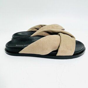 Banana Republic Women's Leather Knot Slide Sandal Mushroom Taupe Size 9.5