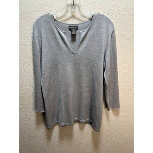 Banana Republic Womens Light Gray V-Neck Knit Sweater 3/4 Sleeves L