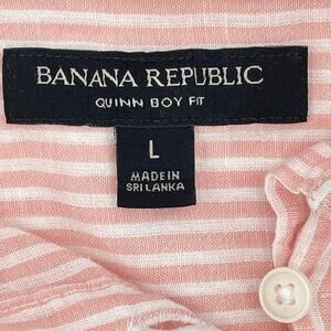 Banana Republic Women's Linen Blend Button Up Top, Sz. L, Pink & White Stripes