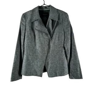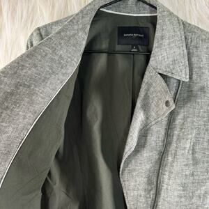 Banana Republic Womens Linen Moto Jacket Rifle Green Zip Up Light Weight 4