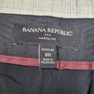 Banana Republic Martin Fit Black Pants Trousers Size 8. Banana Republic Martin Stretch Trouser. Mid Rise - straight through the hip and thigh. Simple slim closure at waistline. Size 8. Excellent Used Condition. Shell: 64% Polyester, 34% Viscose, 2% Spandex; Lining: 100% Polyester