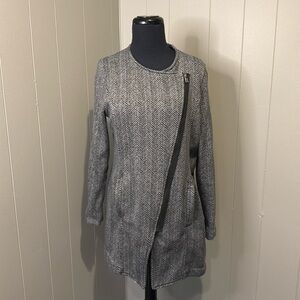Banana Republic Women’s Medium Asymmetric Zip Knit Cardigan Sweater Jacket Herringbone pockets