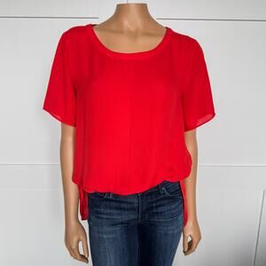 Banana Republic Poppy Red Relaxed Fit Tunic Blouse, High Low Hem, Short Sleeve