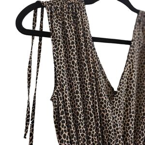 pre-owned Banana Republic asymmetrical dress in size 0. sleeveless with an elastic around the waist. v-neck front and back with adjustable ties(strings)on the shoulder. this Animal print like dress is the perfect addition to your closet.