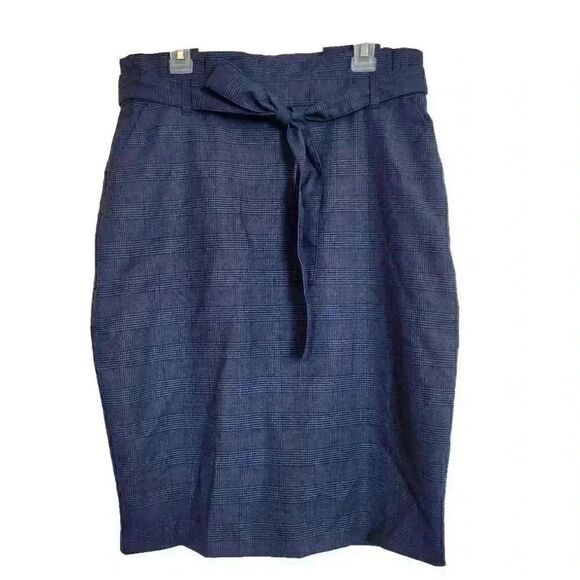 Banana Republic Women's Navy Poly/Rayon/Spandex Plaid Lined Pencil Skirt w Tie Belt & Pockets NEW NWOT tags removed but never worn.