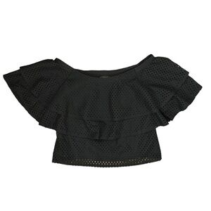 Banana Republic Womens Off The Shoulder Ruffle Blouse S Black Eyelet Feminine