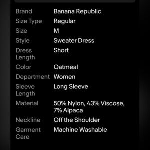 NWT Banana Republic Women’s Off the Shoulder Sweater Dress / Size M / Oatmeal