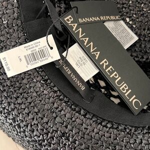 Black straw bucket hat from Banana Republic. One Size at 22 3/4". Great chic packable sun protection! Very on trend.