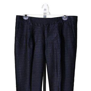 Elevate your wardrobe with these stunning Banana Republic Avery trousers in a beautiful blue geometric pattern. Perfect for any occasion, these dress pants feature a slim straight ankle fit and a pleated front, adding a touch of elegance to your look. With a mid-rise waist and comfortable blended fabric, these pants are designed to flatter your figure and provide all-day comfort. Ideal for travel, weddings, parties, or everyday wear, these slimming and shaping pants also come with convenient pockets. Machine washable and made of high-quality materials like viscose and acetate, these pants are built to last. Whether you're going for a classic, modern, or preppy look, these designer pants are a wardrobe must-have.