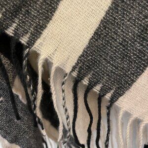 Soft and cozy Banana Republic plaid poncho with an elegant drape and fringe hem. Features a neutral cream and charcoal colorway with an open front silhouette that layers easily over sweaters or long sleeves. A versatile cold-weather piece that works for casual everyday wear or polished fall and winter outfits.