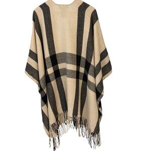Banana Republic Womens Plaid Poncho Cape One Size Fringe Timeless Quiet Luxury