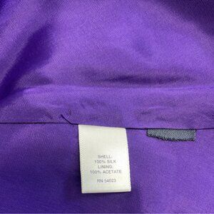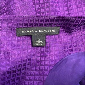 This Banana Republic women's A-line dress is a vibrant purple, featuring puff sleeves and a mid-length cut. Made from luxurious silk, it's a size 0.