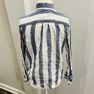 Banana Republic Women’s Quinn Boy Fit Button Blouse Wide Stripe Blue XS