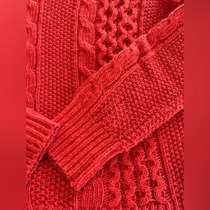Stay cozy and stylish with this vibrant red cable knit sweater. Perfect for layering, this sweater adds a pop of color to any outfit.