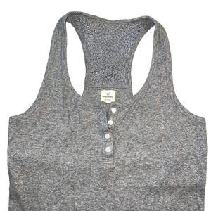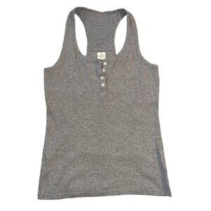 Ribbed Tank Top Sleeveless Scoop Neck Crochet Back Gray Banana Republic