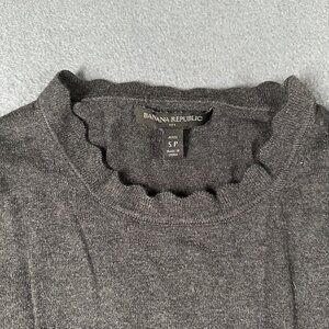 Banana Republic Womens S Petite Gray Knit Sweater Scallop Neck Long Sleeve
