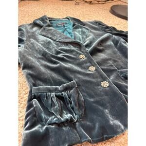 Banana Republic Women's Silk Blend Blazer/jacket; women's 8; Teal Velvet with Rhinestone buttons. Adorable fitted styling; SOFT Velvet Silk Blend. Dress up any occasion!