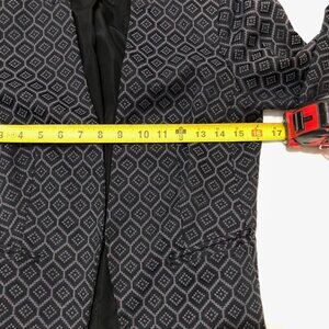 This Banana Republic blazer is a must-have for any fashionable woman's wardrobe. The textured printed design in dark gray and black diamond pattern is truly eye-catching and will make you stand out in any crowd. The blazer is designed for women in size 4 and is perfect for any formal occasion, from a tuxedo party to a business meeting. The brand is well known for its quality and style, making this blazer a great investment piece. Don't miss out on the chance to add this stunning piece to your collection!