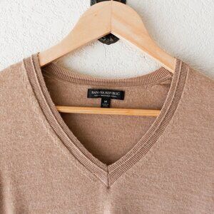 Banana Republic Women’s Size M Camel 100% Merino Wool V-Neck Sweater Top