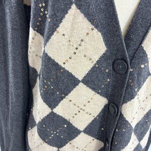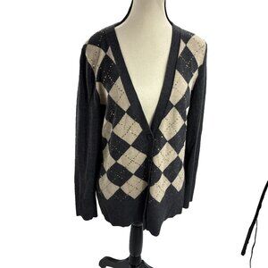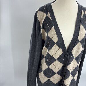 Banana Republic Womens Size M Cardigan Sweater Gray Beige Argyle Knit Button
